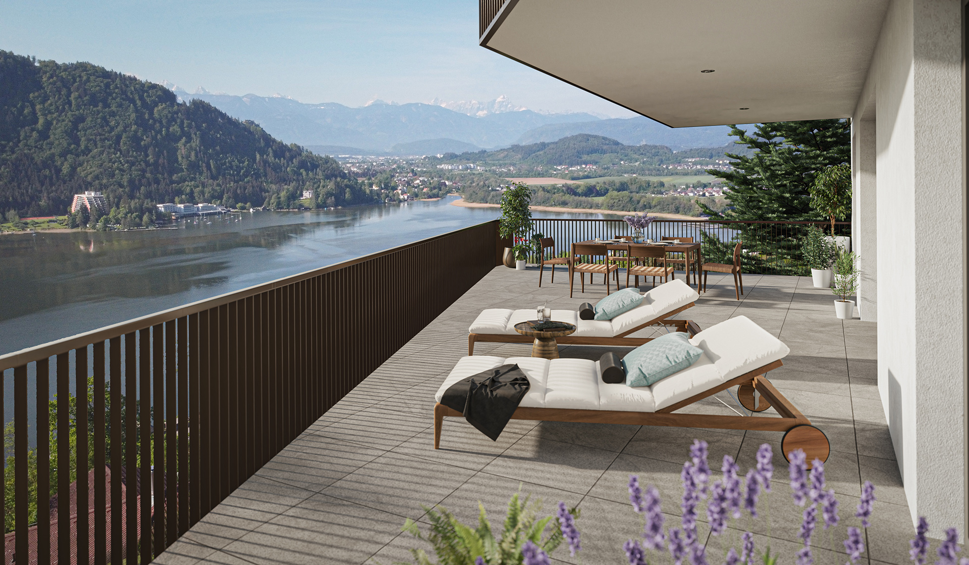 verfügen die Wohnungen über großzügige Terrassen und Balkone, die zum